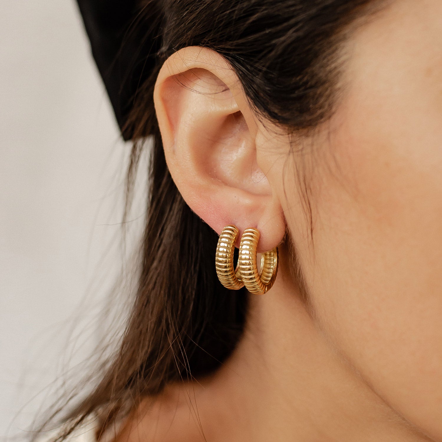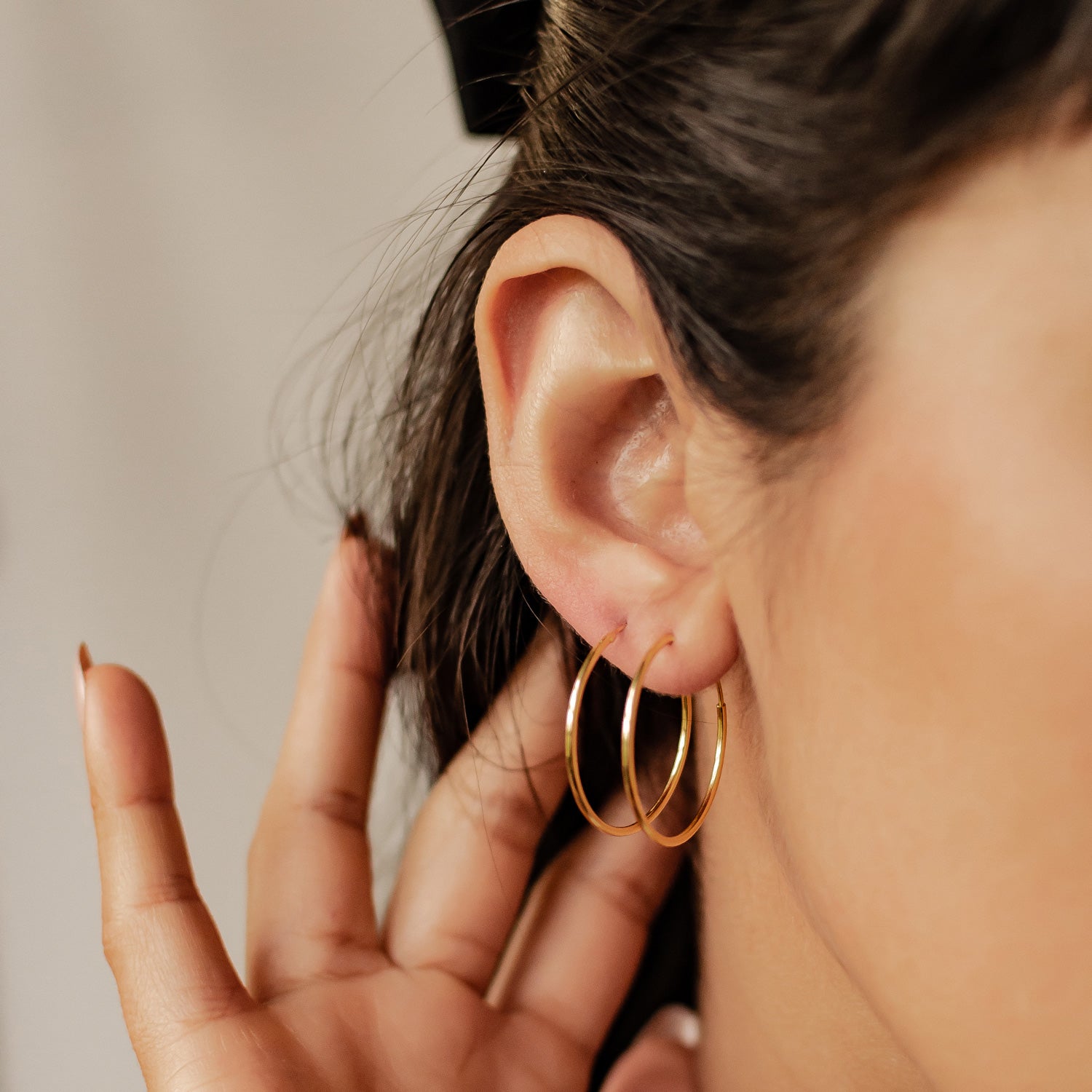 4. Tiny hoop earrings for a timeless classy look