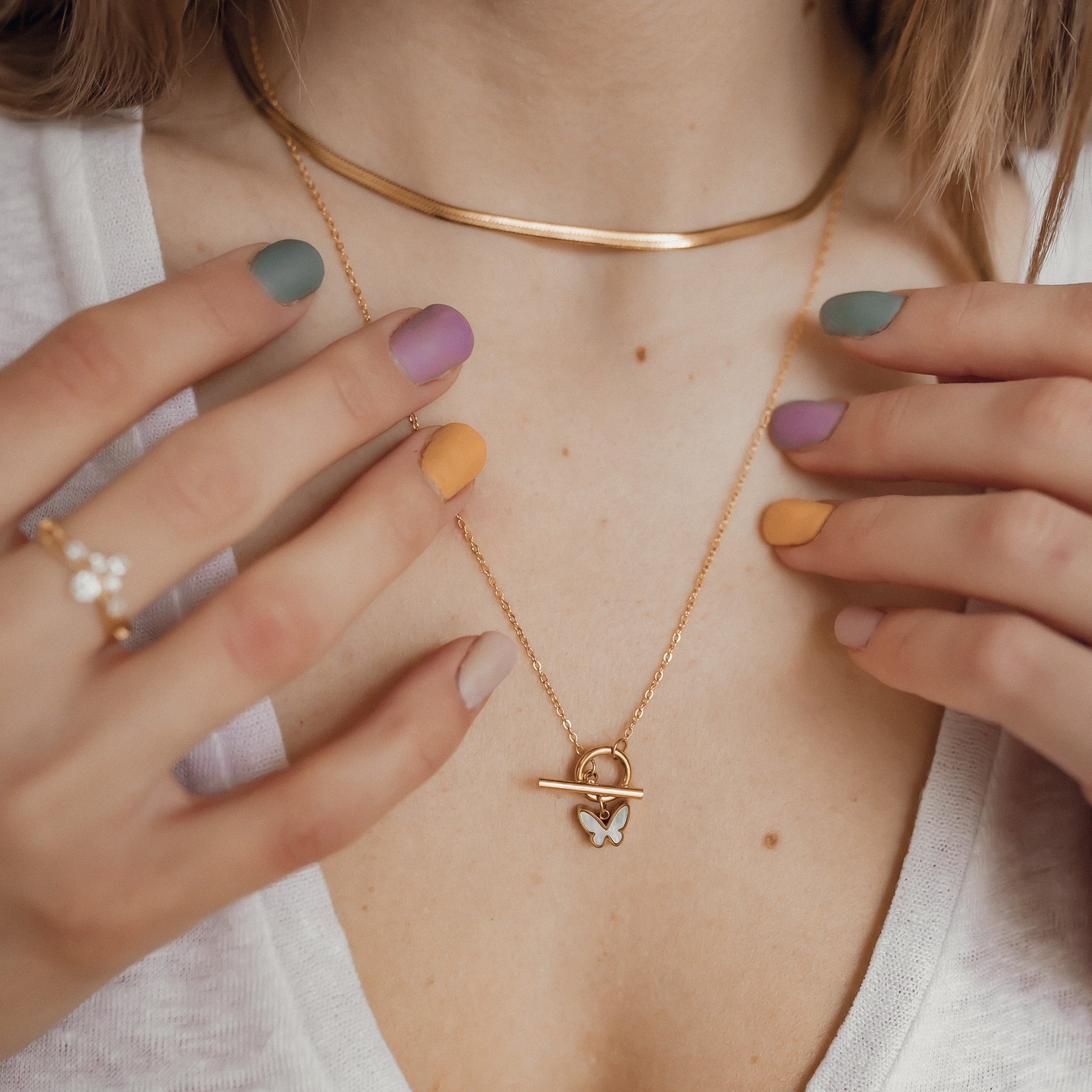 Here, is you chance to get creative with your layered choker and other necklaces.