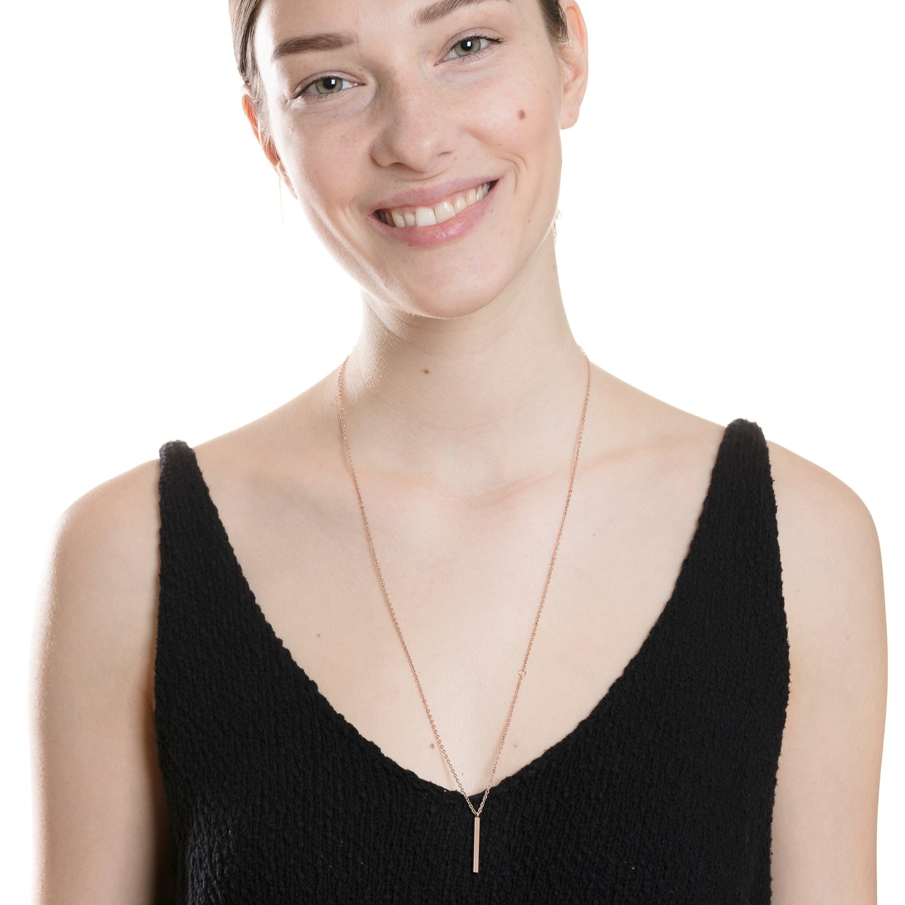 The long pendant necklace is always appropriate because of its minimalistic design and elegance that brings to any outfit. You can wear it with chunky sweaters, spring girly blouses or with your favorite summer tops.