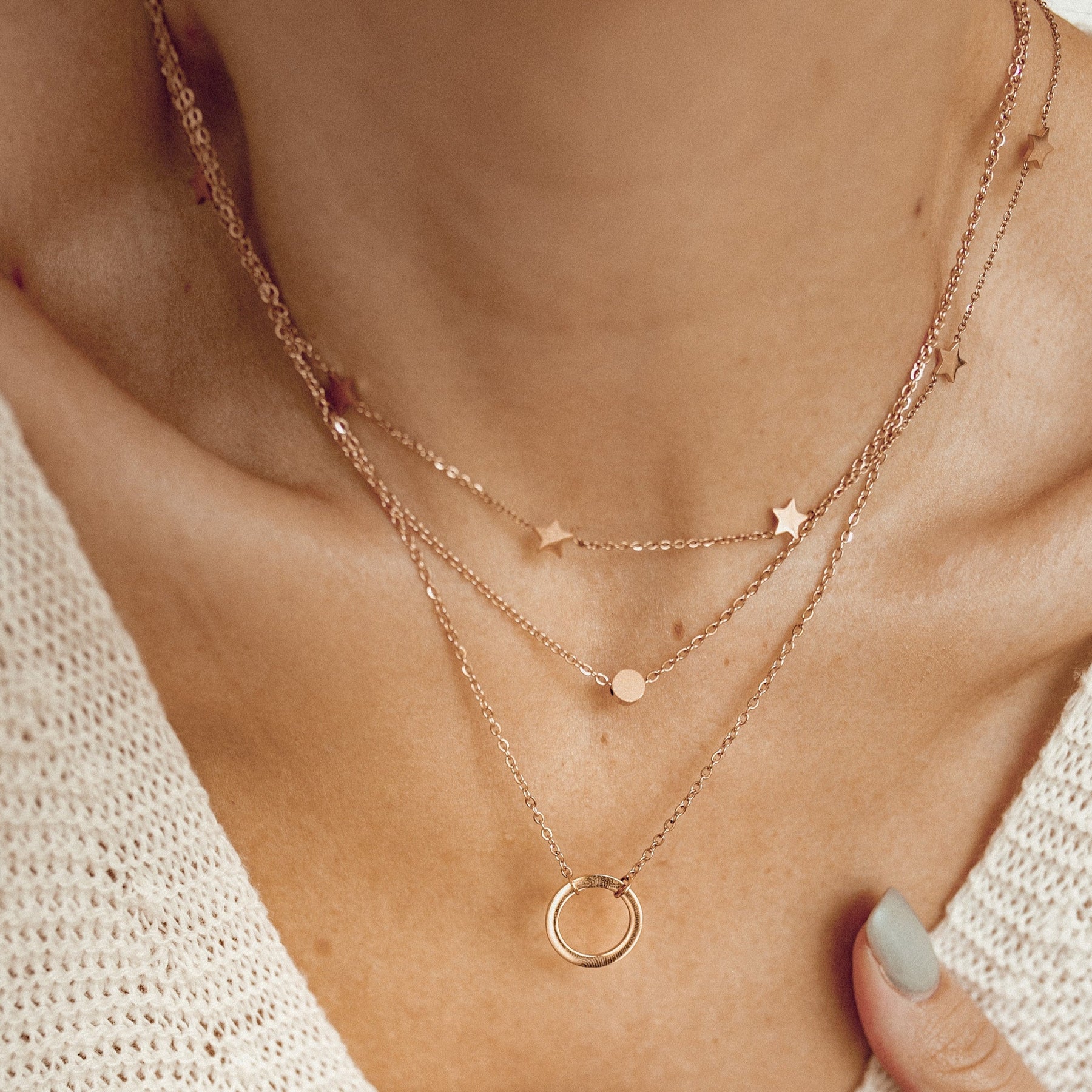 In addition, layered necklaces are very comfortable to wear and you can wear them all year round. Their vibe is dictated by your own personal style and mood.