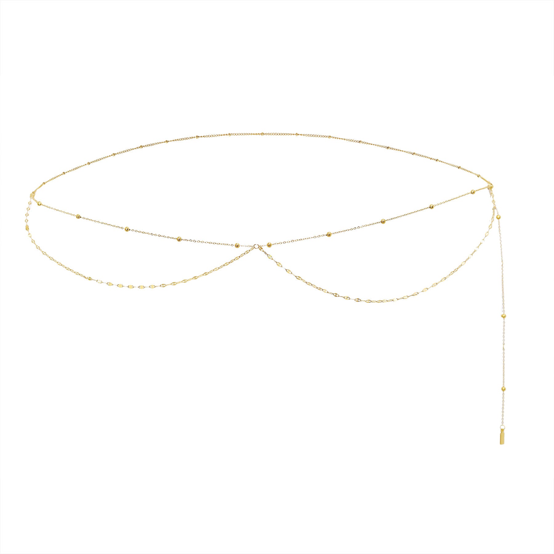 Our designs include delicate satellite chains, bold rolo links, and celestial-inspired starburst accents, available in both single and multi-layered body chain styles. Adjustable closures ensure a perfect fit on every body, allowing you to wear them high on the waist or draped lower on the hips.