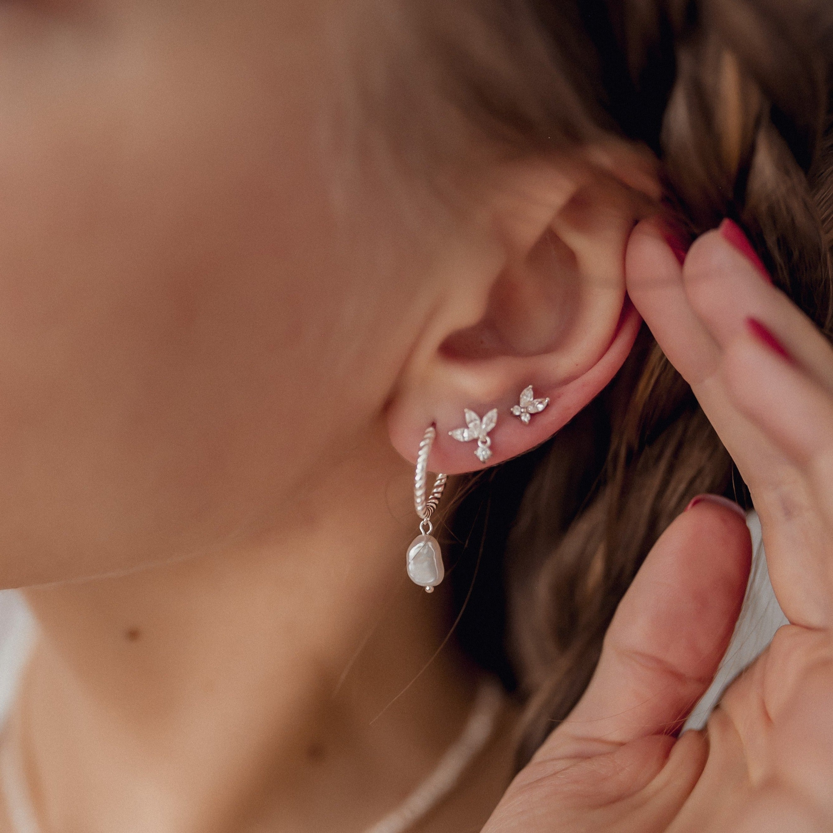 Explore our selection of hoops in different sizes – from small golden hoops to medium-sized silver hoops. Our braided hoops and pearl hoops add a special touch to your appearance. Golden hoops radiate elegance, while stainless steel hoops are both hypoallergenic and waterproof.