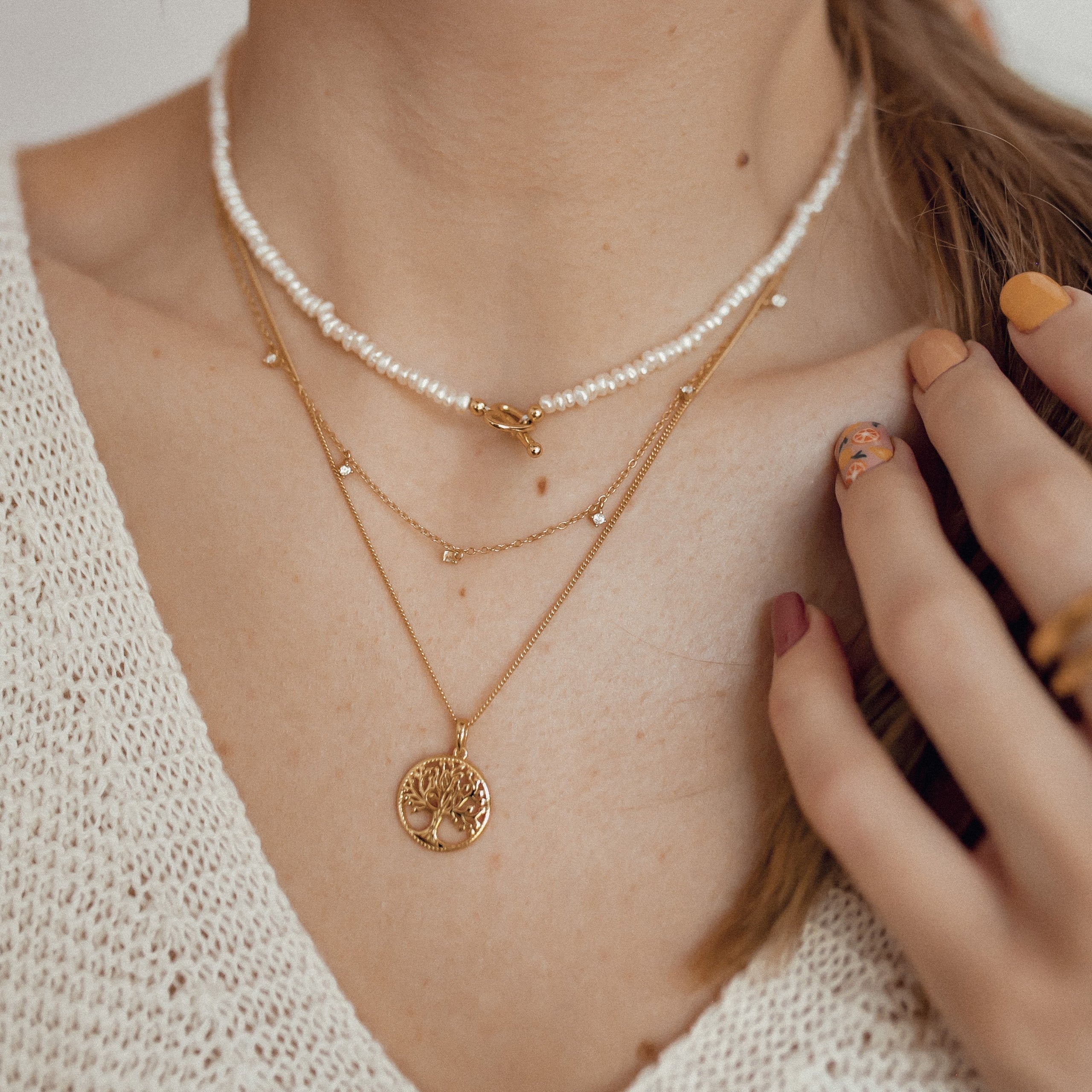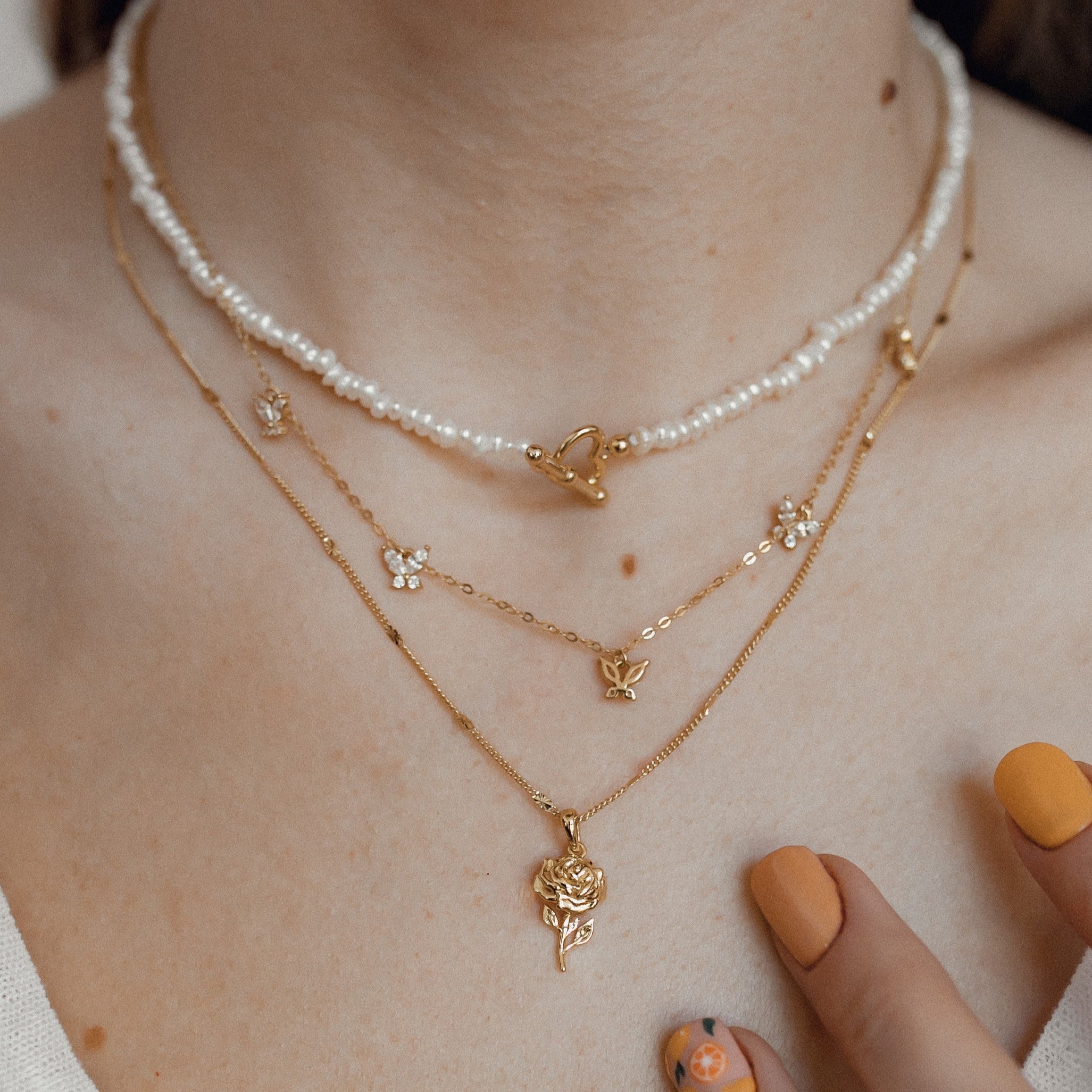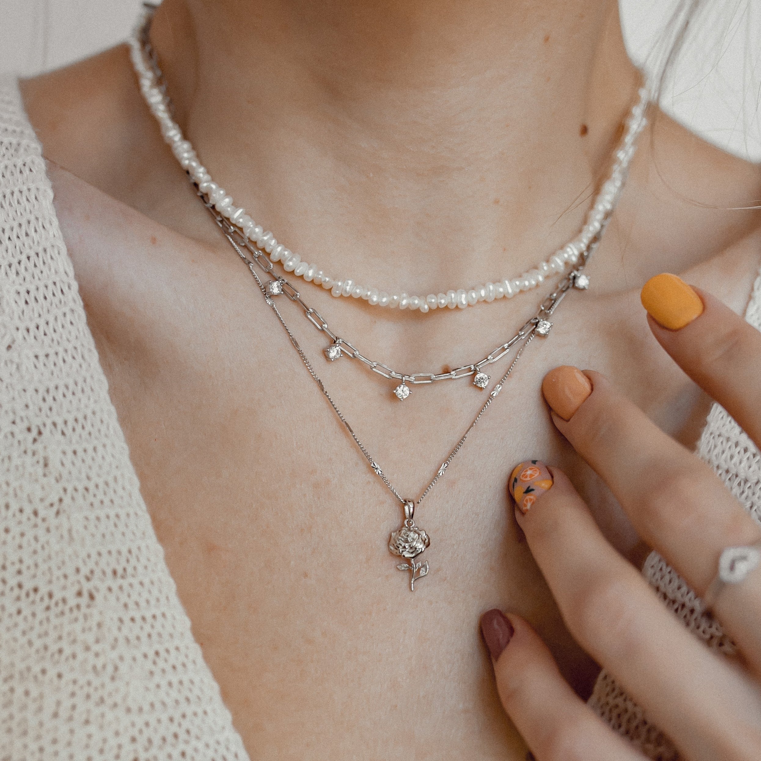 It’s also a good opportunity to embrace the new ‘neckmess’ trend and wear a collection of necklaces artfully arranged and casually layered up, polished off with charms, pendants, and meaningful motifs. Try building your own ‘neckmess’ and pair a fine Singapore chain necklace with a couple of heavier chains - a Figaro or Cuban - then add a couple of heart-shaped pendants. Or add a pearl pendant to a Bobble chain to create a playful duo.