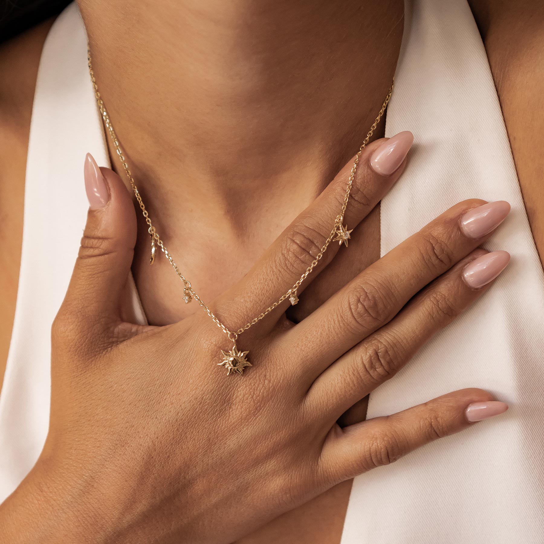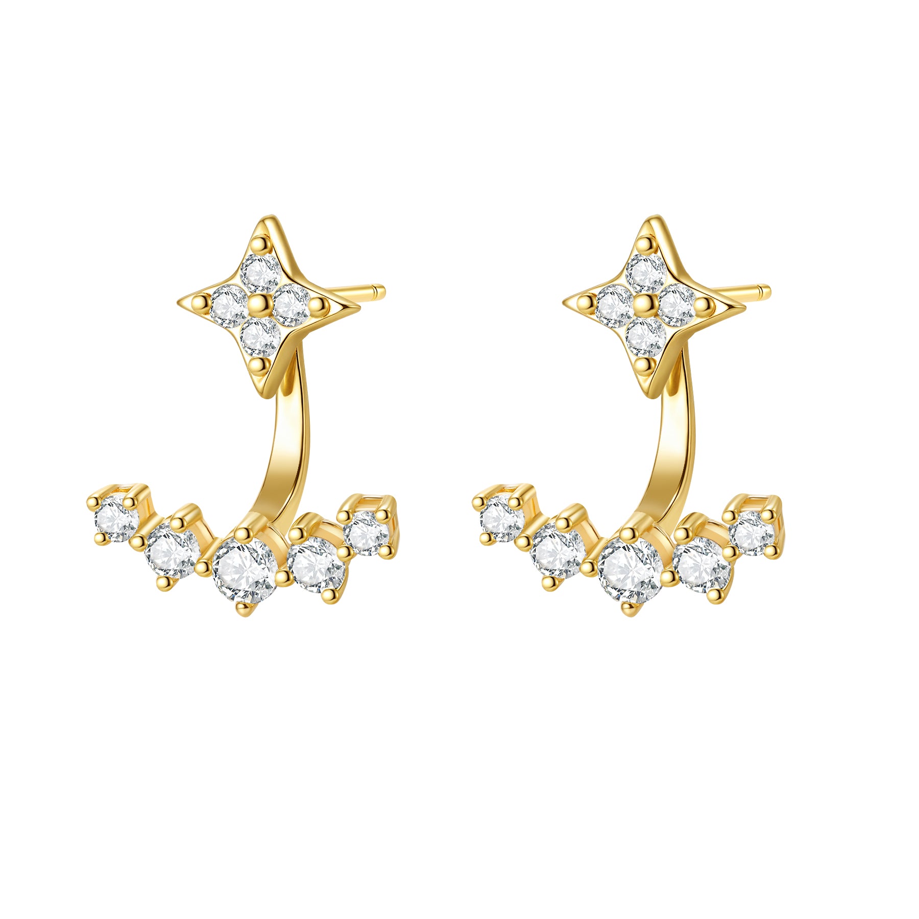 The Mix and Match style can also be an easy way to dress up, or dress down an outfit. Add some polish to your casual jeans by adding 18 karat gold-plated sterling silver necklaces with small, elegant zirconia pendants, or make a pair of tailored trousers more youthful with a pair of hoop earrings with added small star charms.