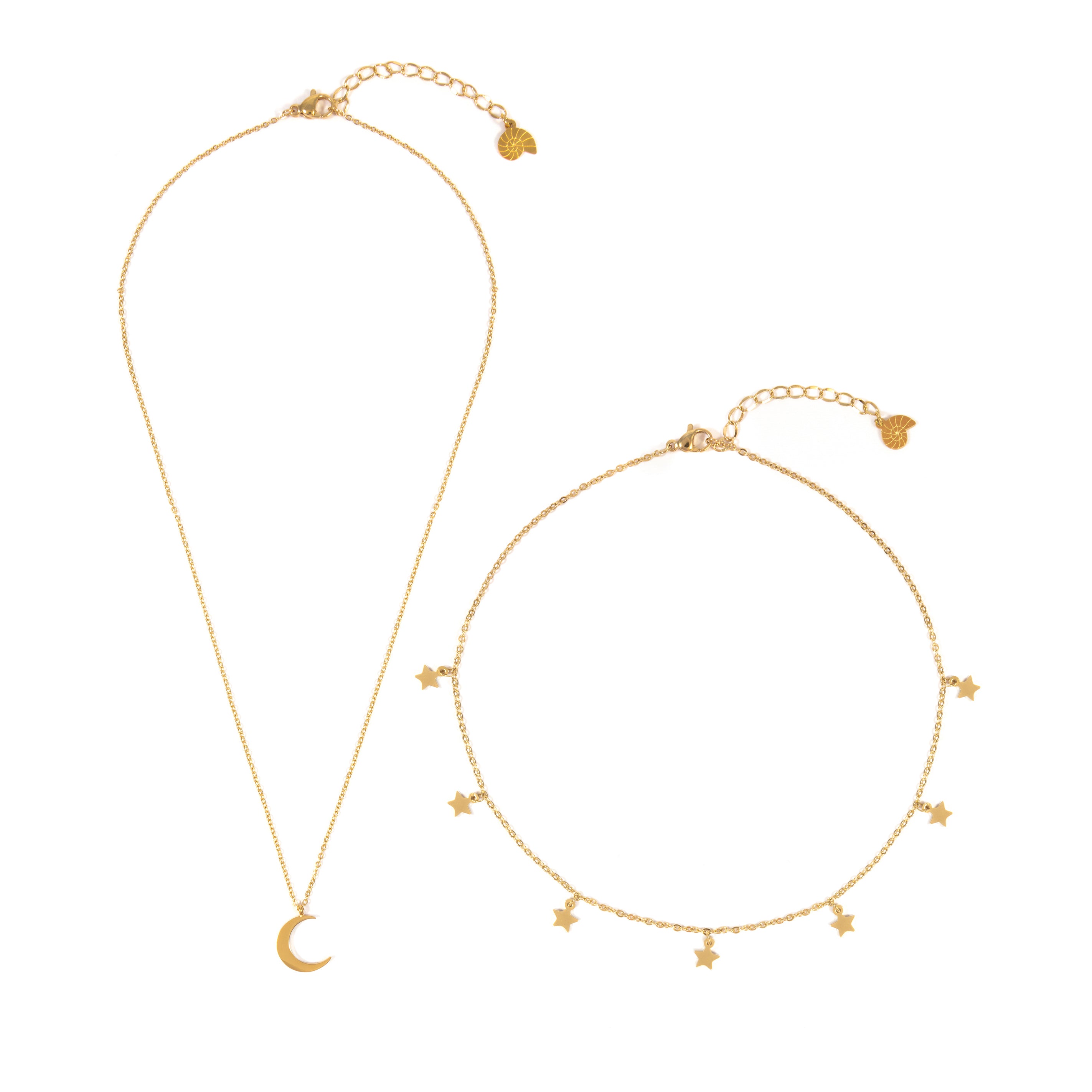 You’ll find everything from fine chokers with repeated crescent moons, to long necklaces featuring both moon and star charms. Some pieces include small gem accents to reflect the brightest stars in the night sky. Whether it’s a dainty chain bracelet adorned with tiny charms, a statement lariat necklace, or hoop earrings that drop gold-plated stars and moons, each design merges aesthetic appeal with deep meaning.