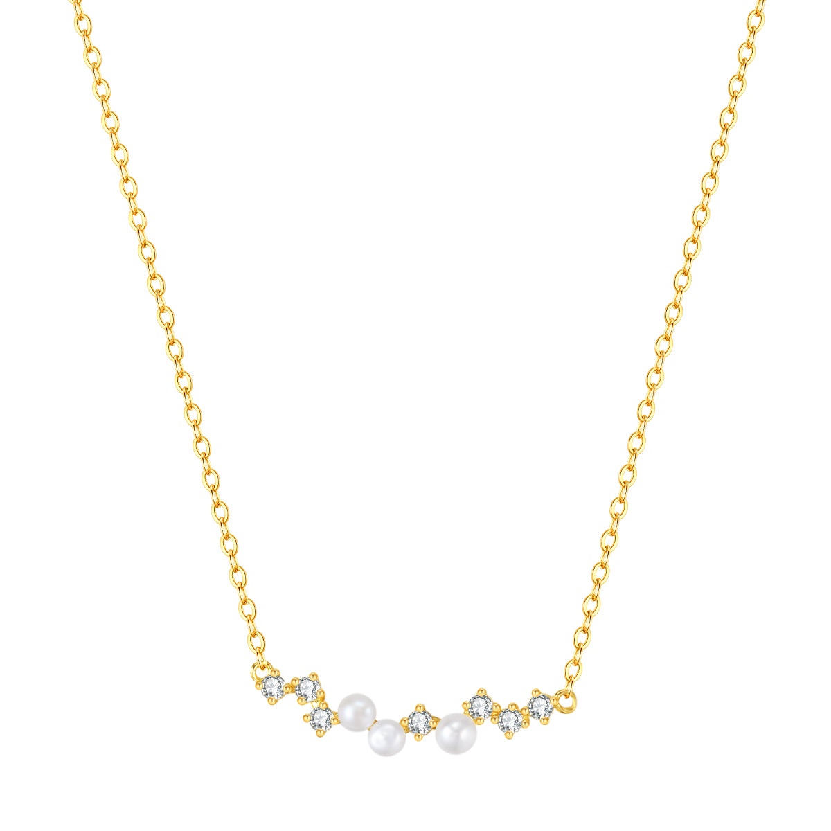Be bold and daring with this captivating Cluster Pearl Pendant Necklace! Crafted from sterling silver, this beautiful piece features a cluster of 7 zirconias and 3 freshwater pearls - sure to turn heads. Available in both gold and silver, this necklace is the perfect accessory for adding a touch of glamour to any outfit. Also, check out Grace Pearl Necklace Sterling Silver Gold.