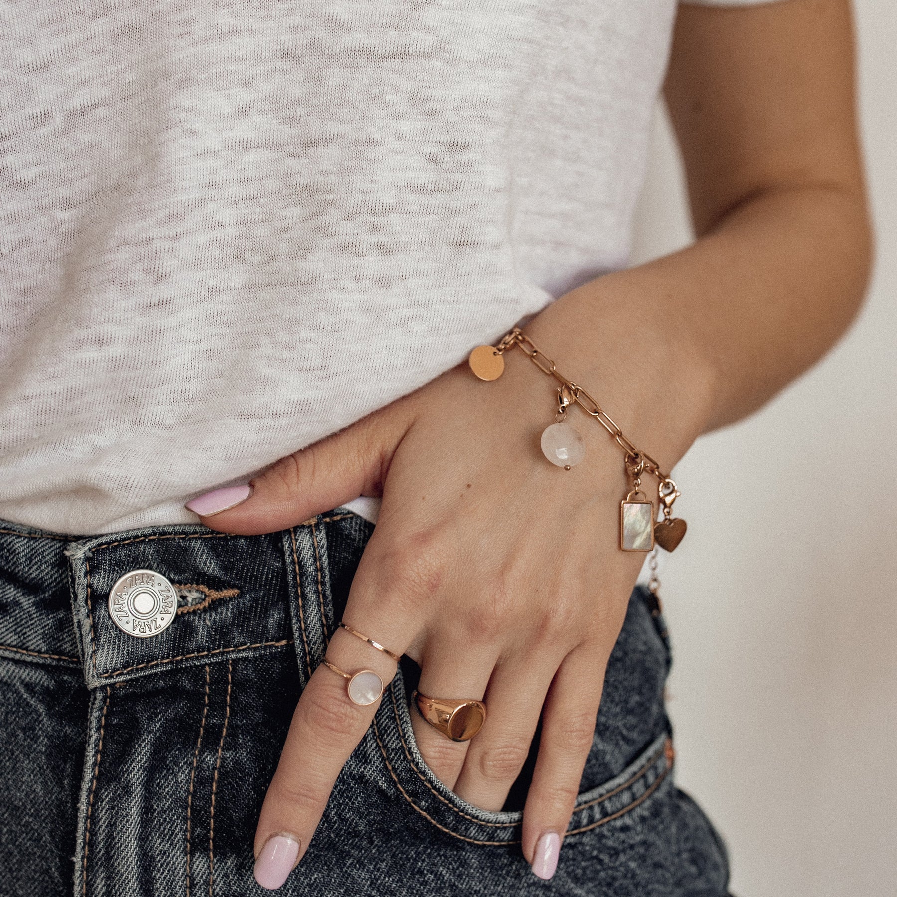 In addition to your cute outfits wear a stack of feminine rings