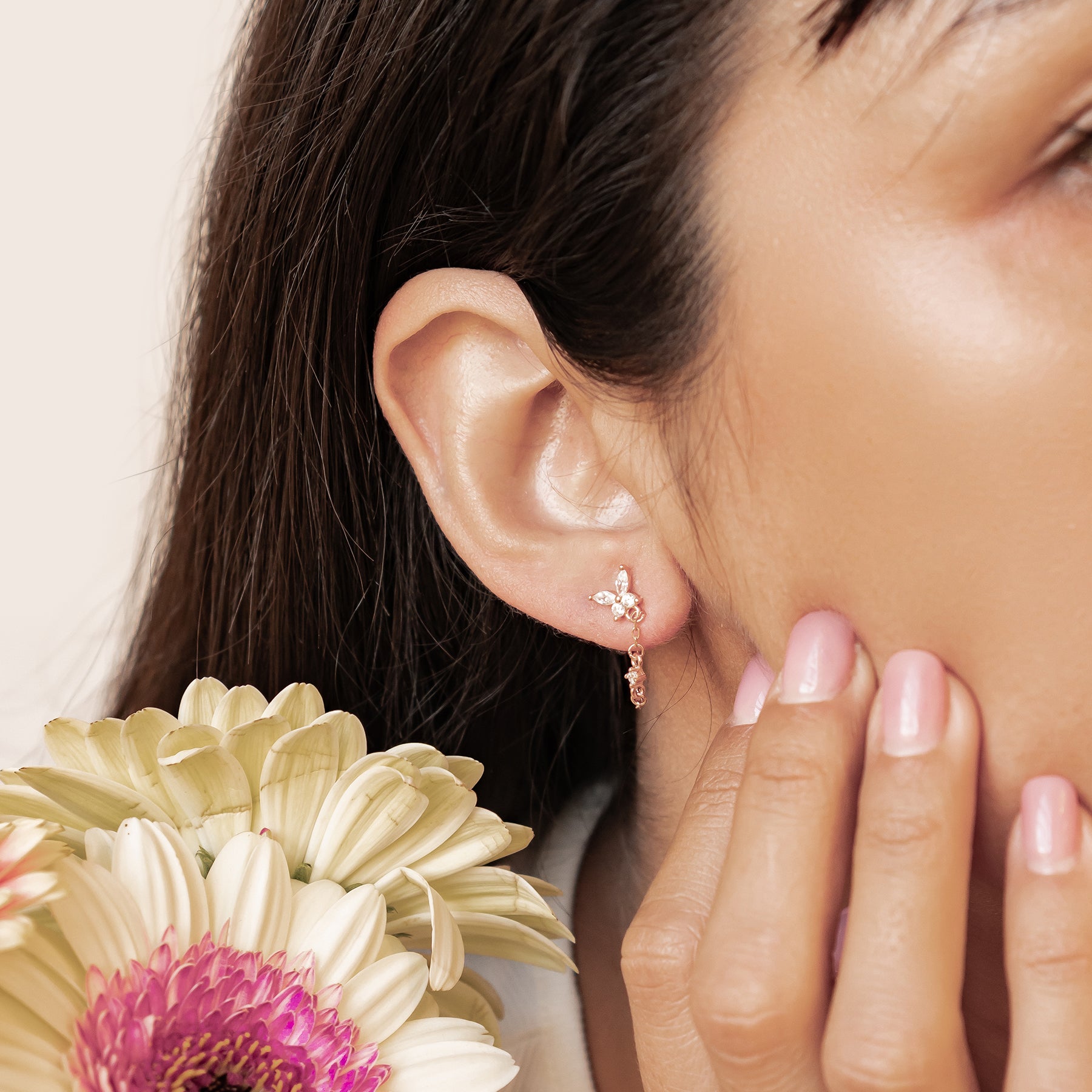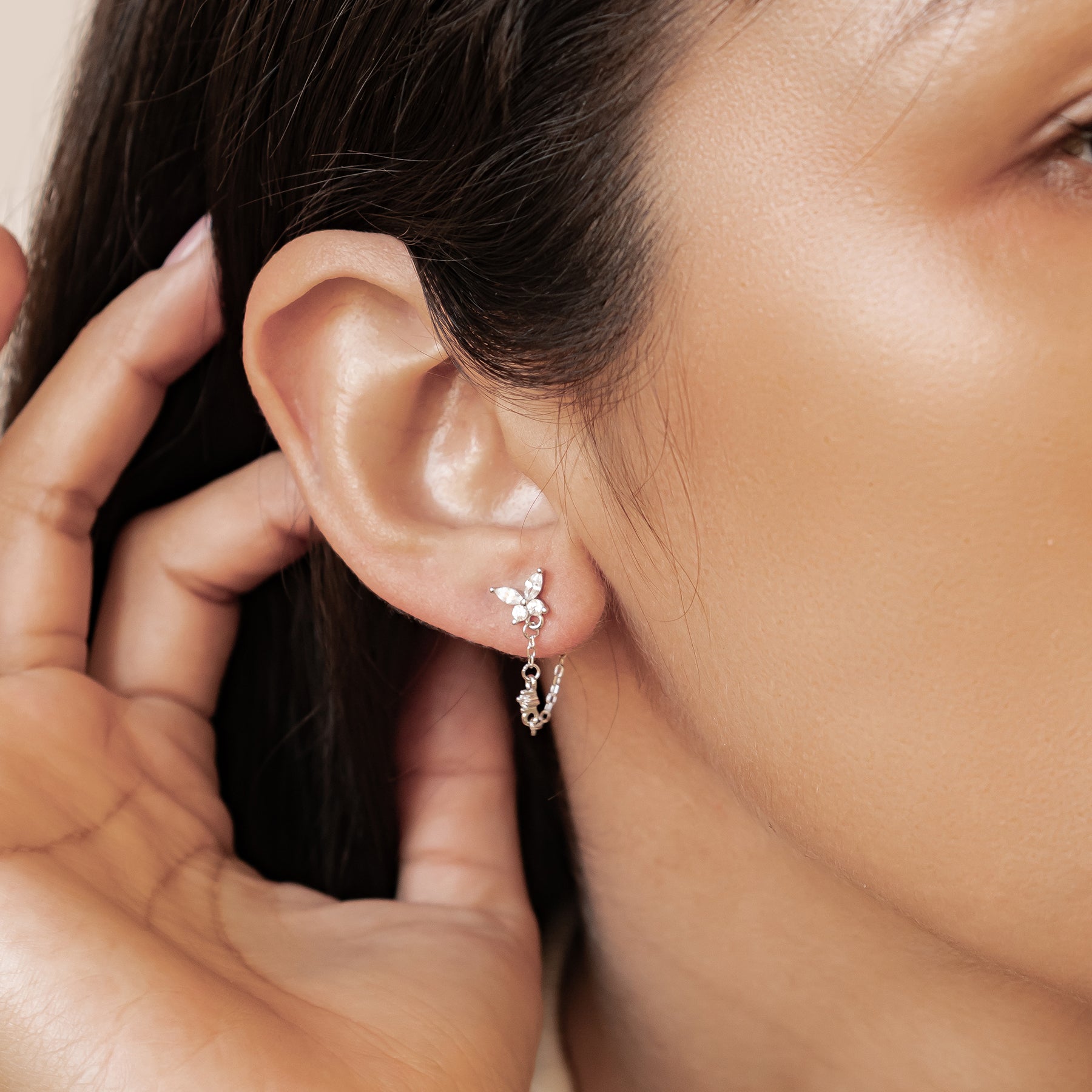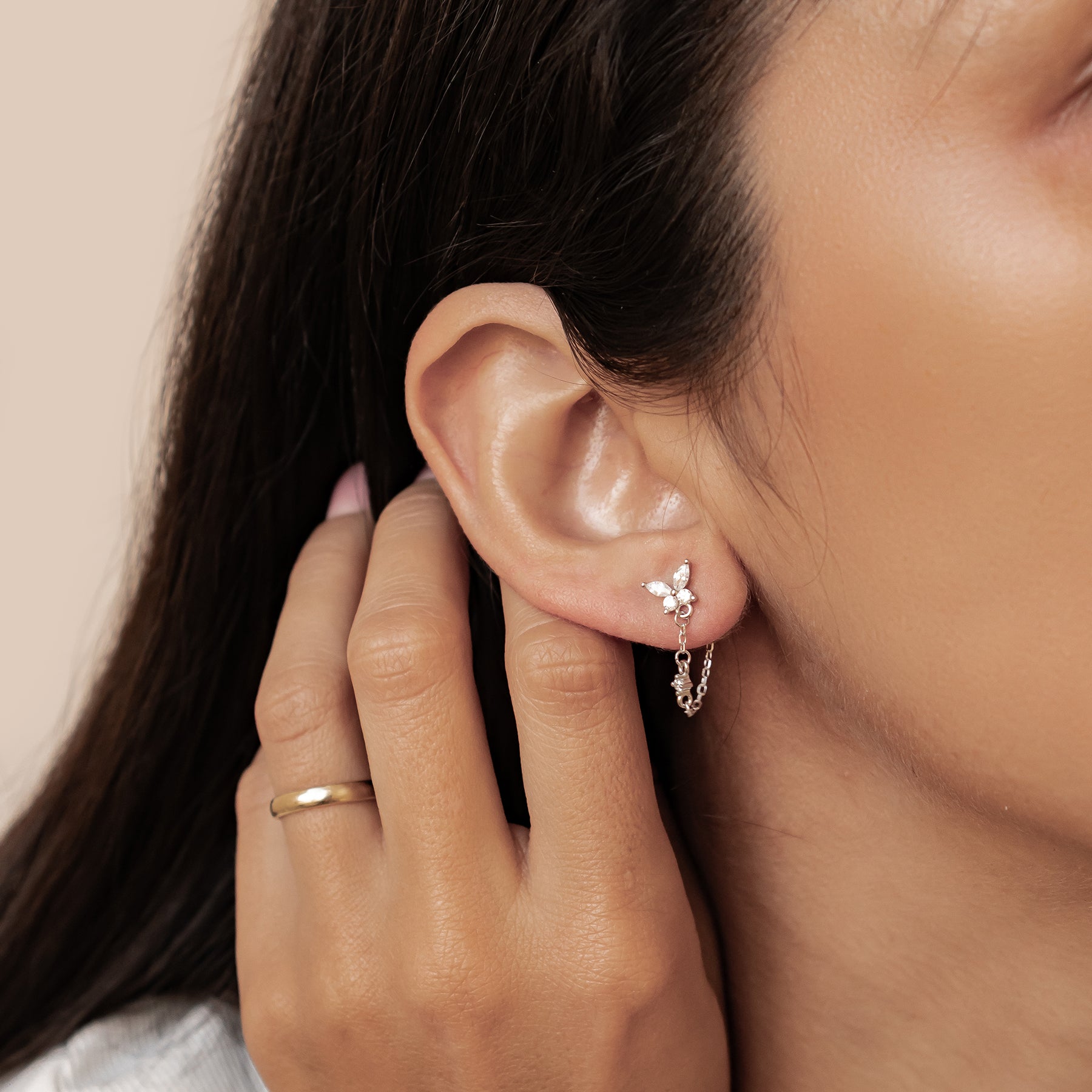 Schmetterlingsblüten-Ohrringe mit Ketten – Sterling Silber