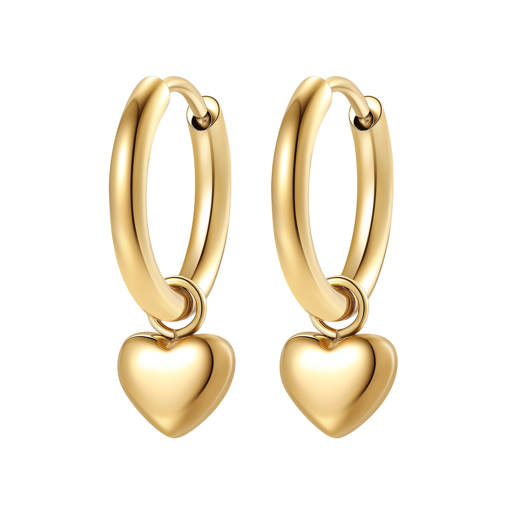 Die Creolen mit Herz Anhänger verbinden markante Edelstahl-Creolen mit einem glatten Herz Anhänger und sorgen so für einen modernen Statement-Look. Wasserdicht und für den täglichen Gebrauch konzipiert, bieten sie mühelosen Glanz mit einem zeitgemäßen, coolen Touch. Erhältlich in Gold, Roségold und Silber – ideal, um sowohl lässige als auch elegante Looks aufzuwerten.
