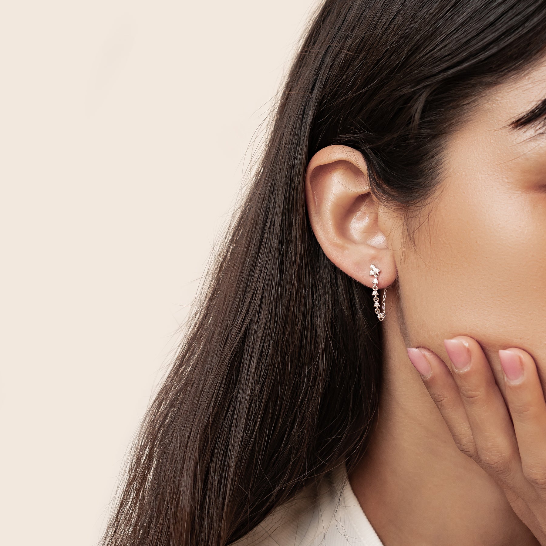 Inspiriert von der Reinheit der Lilie vereinen diese Ohrringe zarte Zirkonia-Steine mit einer feinen Kette und verleihen jedem Look eine feminine, romantische Note. Sie sind leicht, aber dennoch auffallend und bringen elegante Akzente in jedes Outfit. Gefertigt aus 925er Sterling Silber und erhältlich in Gold, Roségold und Silber.