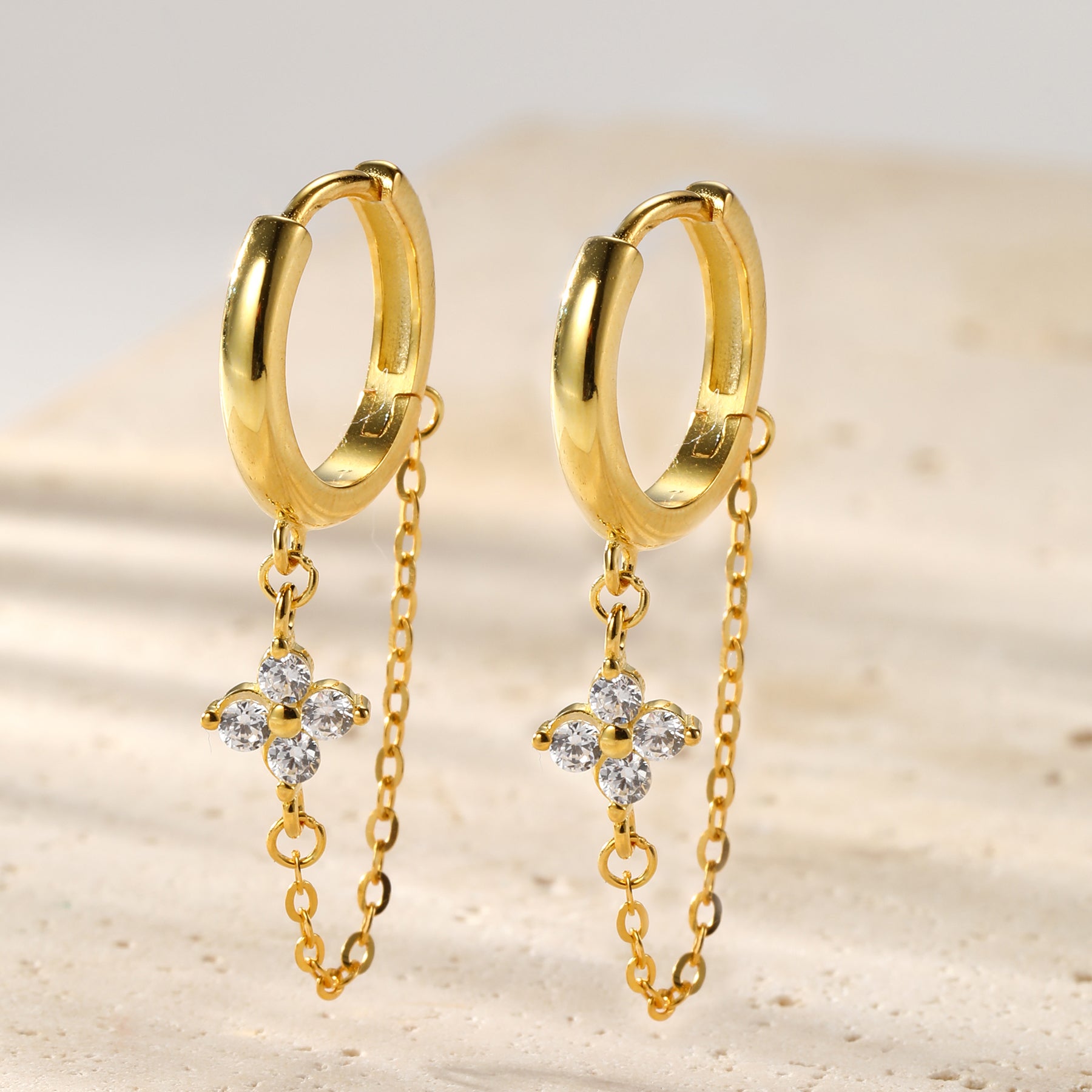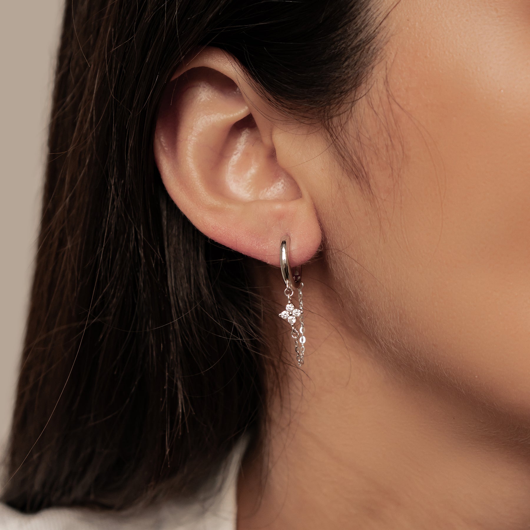 Funkelnde Blüten-Creolen mit Ketten – Sterling Silber