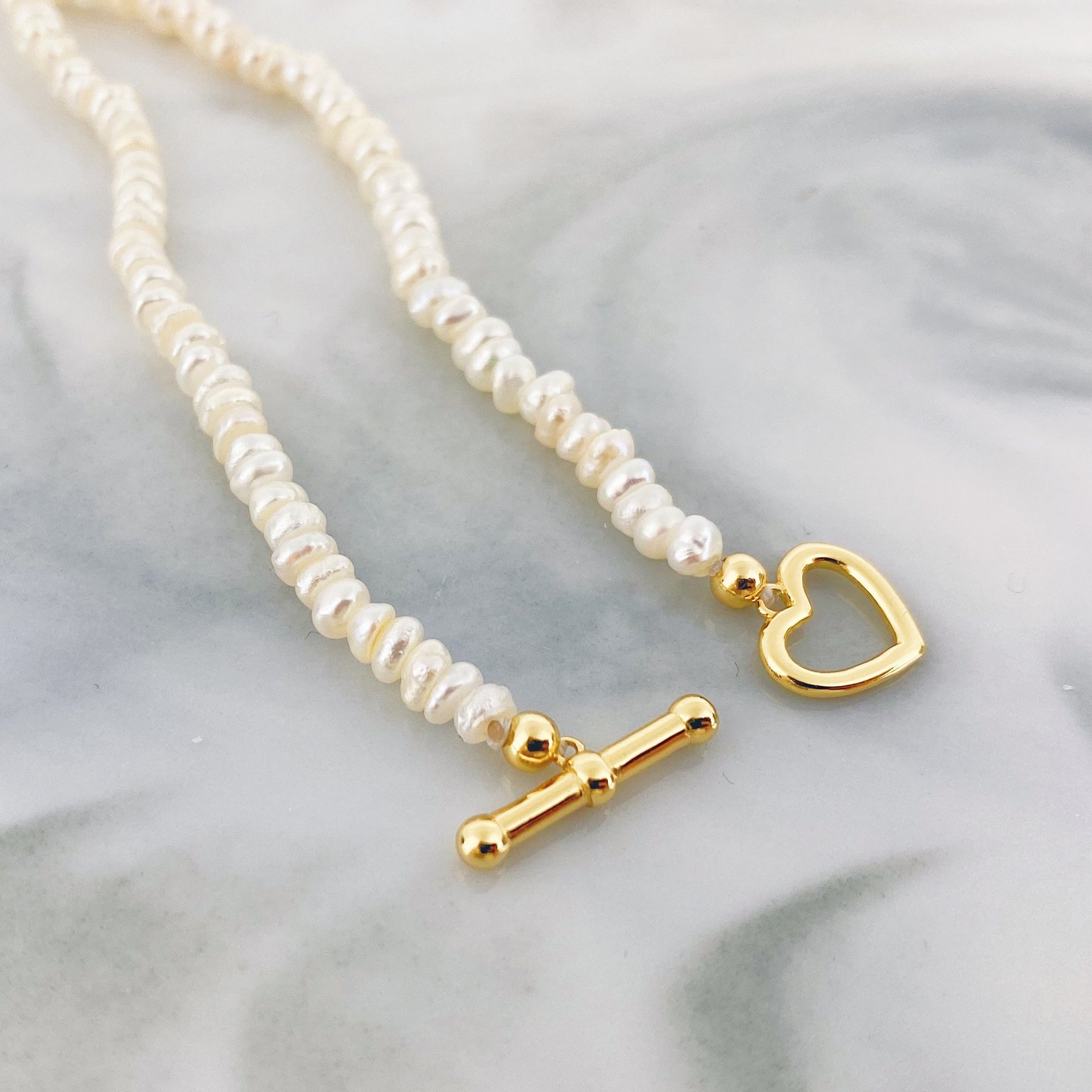 Pearl Heart Sterling Silver Clasp Choker Necklace