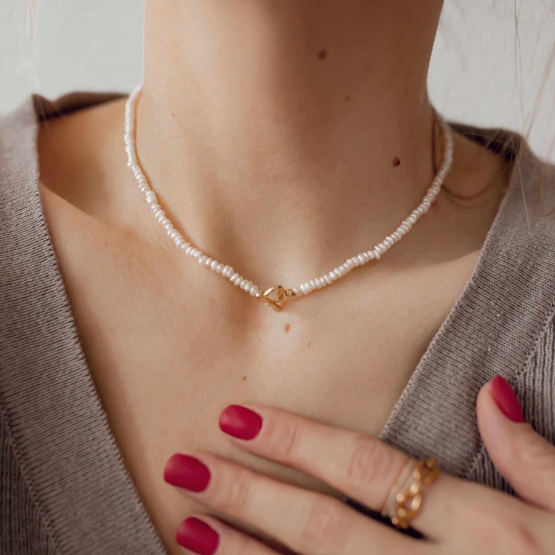 You are a fan of the stacking jewelry trend? There is no problem for you to combine your pearl jewelry, in this case a small delicate necklace with a pearl pendant, with other longer and shorter necklaces.
