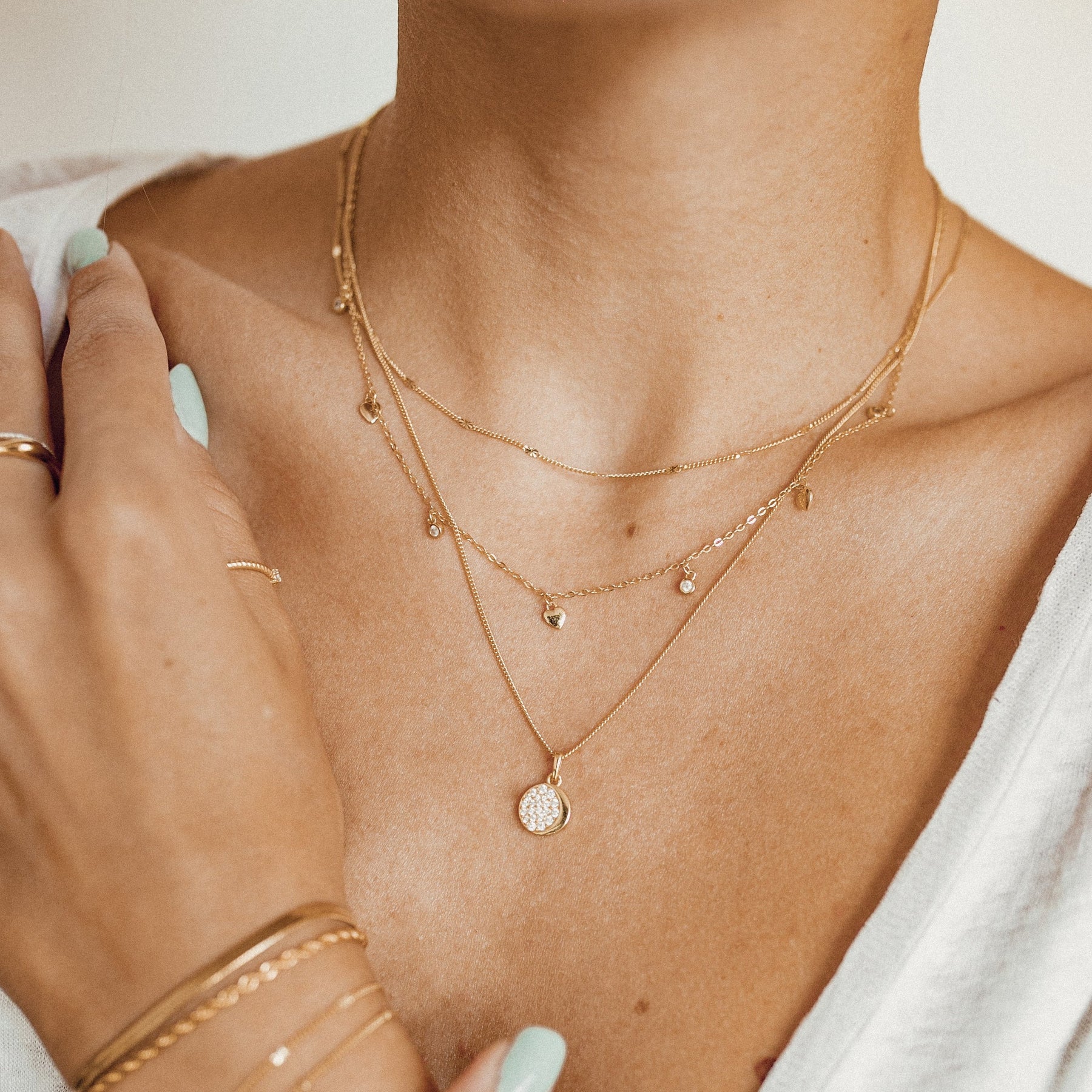 Layered necklaces look very attractive with any type of an outfitLeft: Layered Lucky Charms Necklace in Gold; Right: Lucky Evil Eye Layered Necklace in Gold