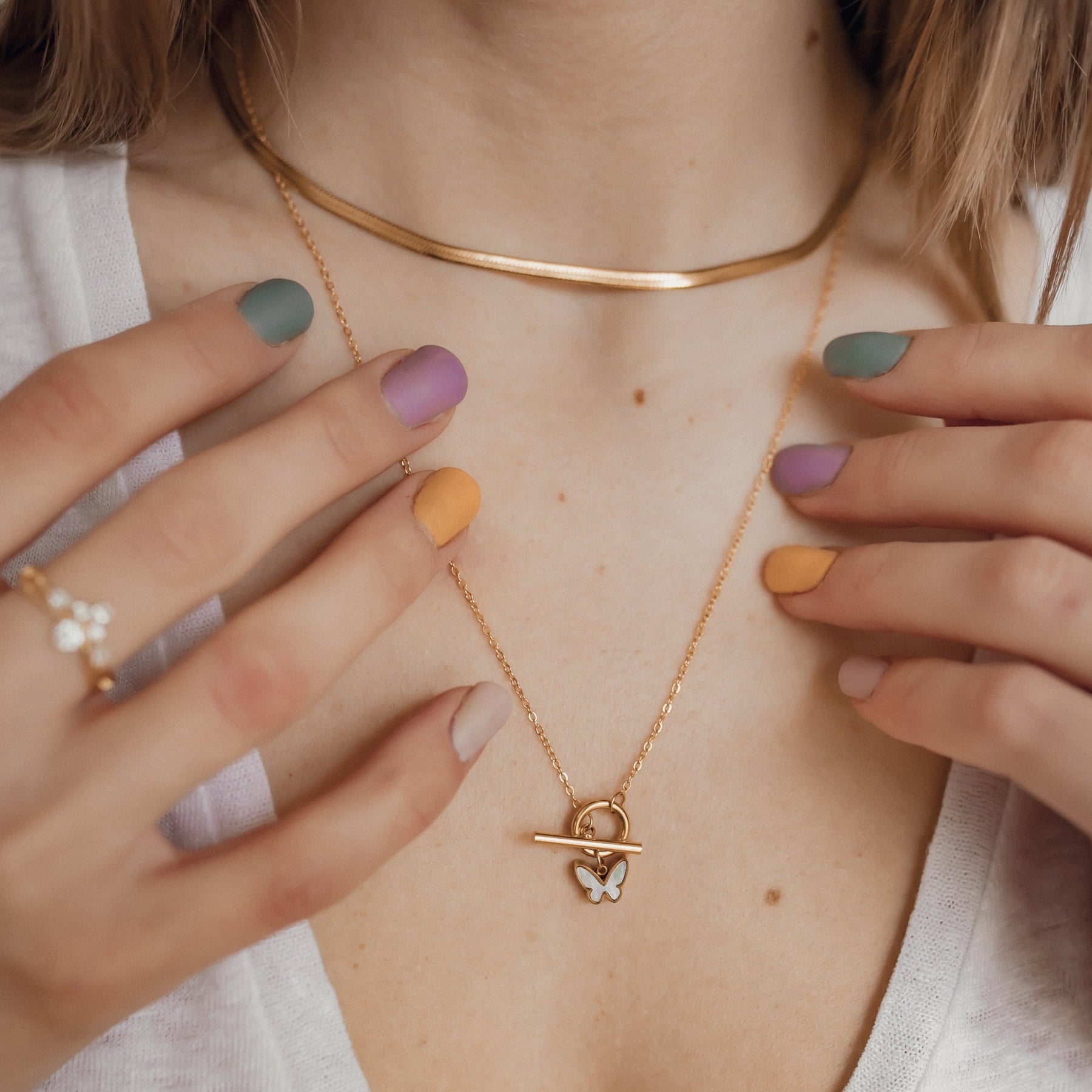 7. Delicate layered necklaces for a feminine look