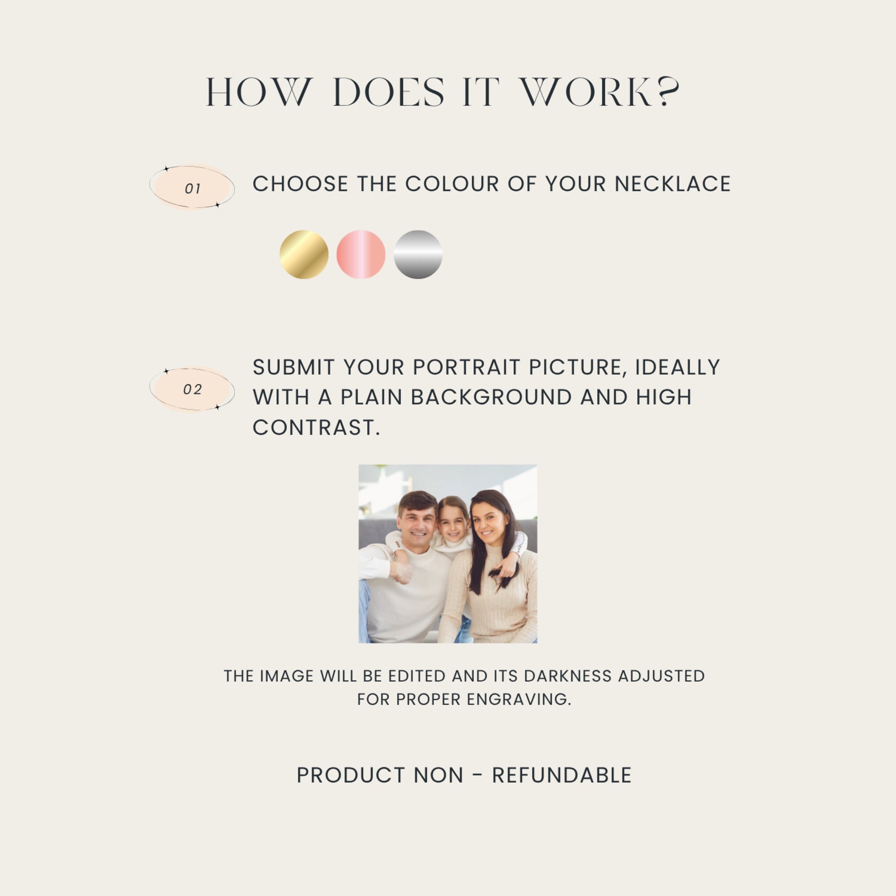 Capture your most meaningful moments in a piece you can wear every day. This classic round pendant necklace transforms your favorite photo into a timeless keepsake, engraved with a latest-generation laser for exceptional clarity and precision.