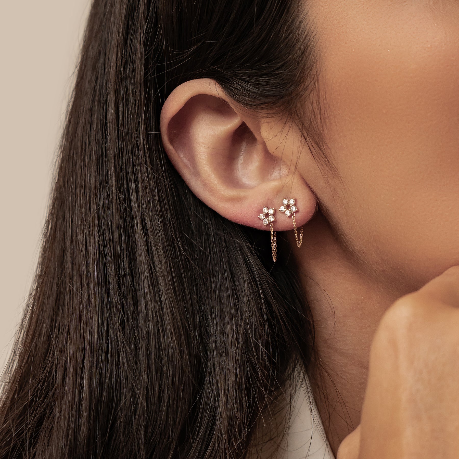 A symbol of protection and quiet optimism, the Luck Chain Earrings feature a diamond cluster paired with a graceful chain drop. Crafted in solid 14K gold, they bring gentle movement and light to a timeless design made to carry positive energy wherever you go.